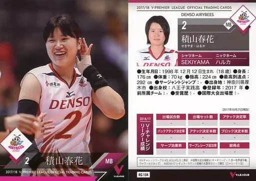 Nombre comercial en japonés: スポーツ/レギュラーカード/2017/18 V・プレミアリーグ女子公式トレーディングカード RG 104 [レギュラーカード] : 積山春花