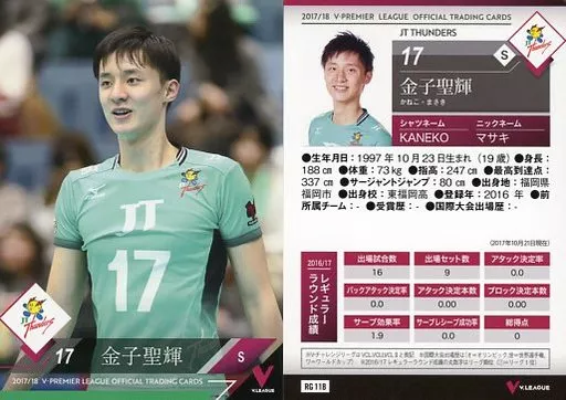 Nombre comercial en japonés: スポーツ/レギュラーカード/2017/18 V・プレミアリーグ男子公式トレーディングカード RG 118 [レギュラーカード] : 金子聖輝