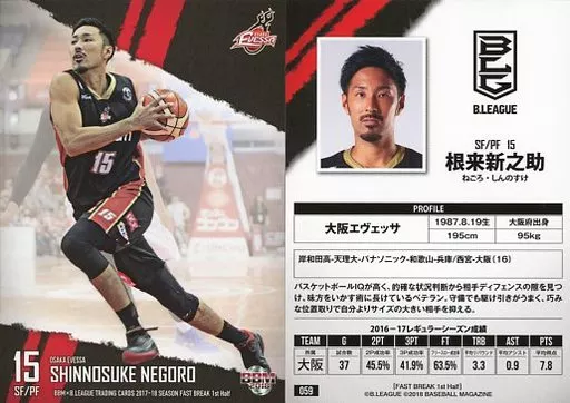 BBM / Regular card / Osaka Evessa / BBM2018 BBM×B. LEAGUE TRADING CARDS 2017-18 SEASON FAST BREAK 1 st Half 059 [tarjeta regular] : Shinnosuke Negoro