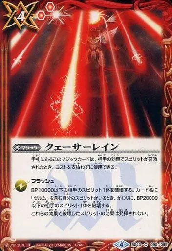 Nombre comercial en japonés: バトルスピリッツ/C/マジック/煌臨編 第4章 選バレシ者 BS43-090[C]:クェーサーレイン