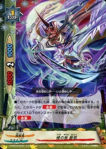 Nombre comercial en japonés: バディファイト/レア/モンスター/カタナW/[BF-X-CBT02]バッツ クライマックスブースター第2弾「最凶バッツ覚醒!~黒き機神~」 X-CBT02/0034[レア]:憾の妖 般若(パラレル仕様)