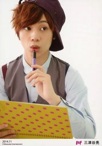 Nombre comercial en japonés: 生写真(男性)/俳優/D2 D2/三津谷亮/上半身・衣装水色グレー・帽子・左手ペン・右手スケッチブック・目線右・「2014.11」/p.o.t会員限定ブロマイド
