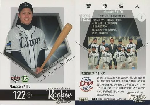 BBM / Regular card / Saitama Seibu Lions / BBM2018 Rookie Edition 019 [tarjeta regular] : Seihito Saito