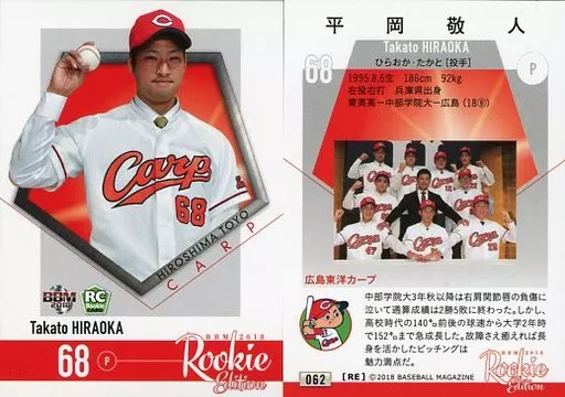 Nombre comercial en japonés: BBM/レギュラーカード/広島東洋カープ/BBM2018 ルーキーエディション 062[レギュラーカード]:平岡敬人