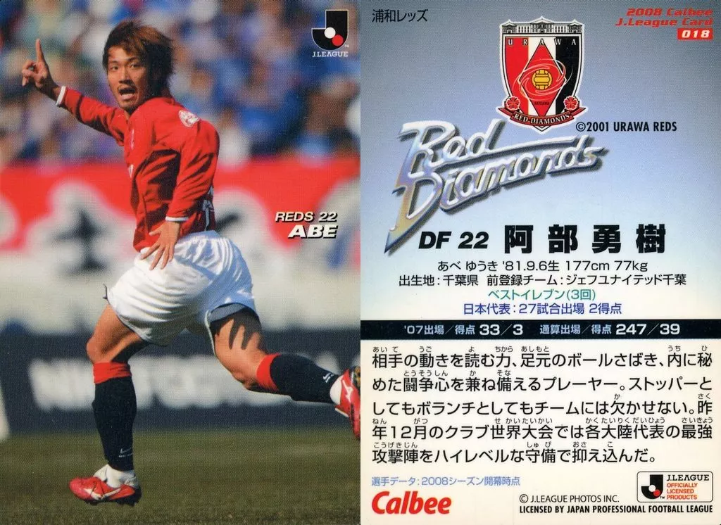 Nombre comercial en japonés: スポーツ/浦和レッズ/レギュラーカード/Jリーグチップス 2008 第1弾 018 [レギュラーカード] : 阿部 勇樹