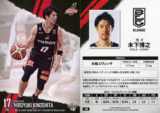 BBM / Regular card / Osaka Evessa / BBM2018 BBM×B. LEAGUE TRADING CARDS 2017-18 SEASON FAST BREAK 2 nd Half 149 [tarjeta regular] : Hiroyuki Kinoshita