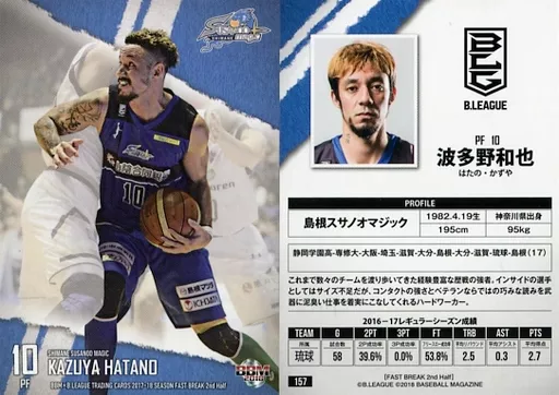 Nombre comercial en japonés: BBM/レギュラーカード/島根スサノオマジック/BBM2018 BBM×B.LEAGUE TRADING CARDS 2017-18 SEASON FAST BREAK 2nd Half 157[レギュラーカード]:波多野和也