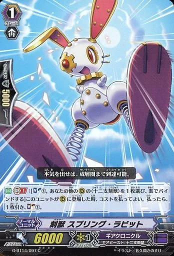 Nombre comercial en japonés: ヴァンガード/C/ノーマルユニット/ギアクロニクル/ヴァンガードG ブースターパック 第14弾「竜神烈伝」 G-BT14/097[C]:刻獣 スプリング・ラビット