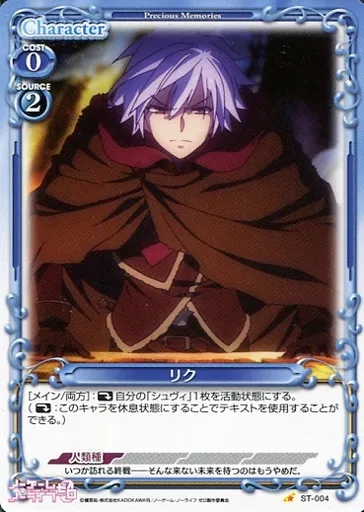 Nombre comercial en japonés: プレシャスメモリーズ/C/キャラクター/青/ノーゲーム・ノーライフ ゼロ スターターデッキ ST-004[C]:リク