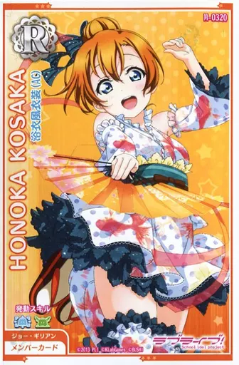 Nombre comercial en japonés: アニメ系トレカ/R/メンバーカード/ラブライブ!スクールアイドルフェスティバル after school ACTIVITY M-0320[R]:高坂穂乃果/浴衣風衣装(AC)