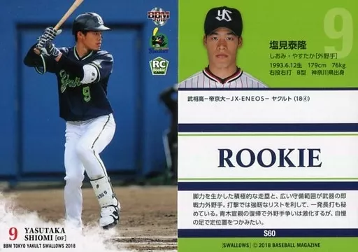 BBM / tarjeta regular / BBM2018 Tokyo Yakult Swallows S60 [tarjeta regular] : Yasutaka Shiomi