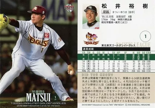 Nombre comercial en japonés: BBM/レギュラーカード/東北楽天ゴールデンイーグルス/BBM2018 ベースボールカード 1stバージョン 056[レギュラーカード]:松井裕樹
