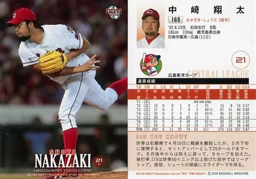 Nombre comercial en japonés: BBM/レギュラーカード/広島東洋カープ/BBM2018 ベースボールカード 1stバージョン 169[レギュラーカード]:中﨑翔太
