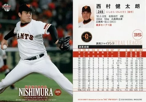 Nombre comercial en japonés: BBM/レギュラーカード/読売ジャイアンツ/BBM2018 ベースボールカード 1stバージョン 249[レギュラーカード]:西村健太朗