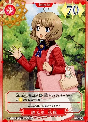 Nombre comercial en japonés: アニメ系トレカ/キャラクターカード/カードキャプターさくら トレーディングカードコレクション ブースターパック 01-054:詩之本 秋穂
