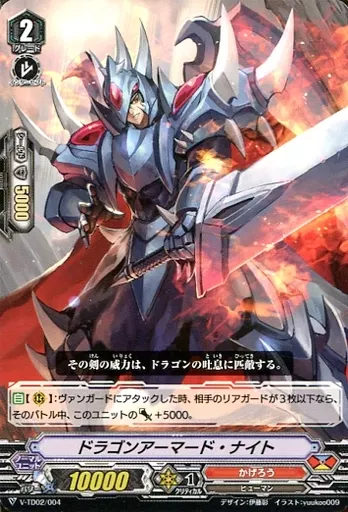 Nombre comercial en japonés: ヴァンガード/ノーマルユニット/かげろう/トライアルデッキ 櫂トシキ [VG-V-TD02] V-TD02/004[-]:ドラゴンアーマード・ナイト
