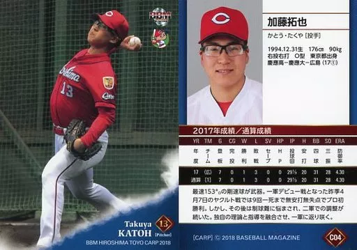 Nombre comercial en japonés: BBM/レギュラーカード/BBM2018 広島東洋カープ C04[レギュラーカード]:加藤拓也