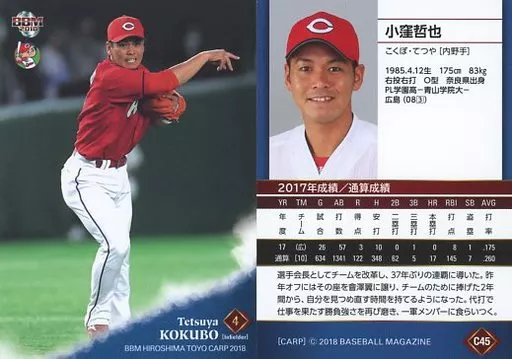 BBM/tarjeta regular / BBM2018 Hiroshima Toyo Carp C45 [tarjeta regular] : Tetsuya Kokubo