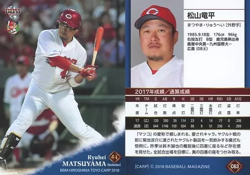 Nombre comercial en japonés: BBM/レギュラーカード/BBM2018 広島東洋カープ C63 [レギュラーカード] : 松山竜平