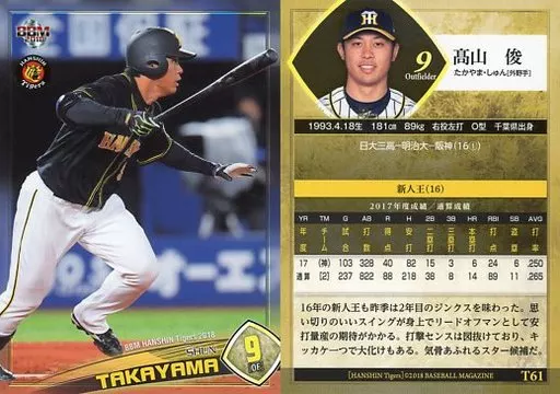 Nombre comercial en japonés: BBM/レギュラーカード/BBM2018 阪神タイガース T61[レギュラーカード]:髙山俊