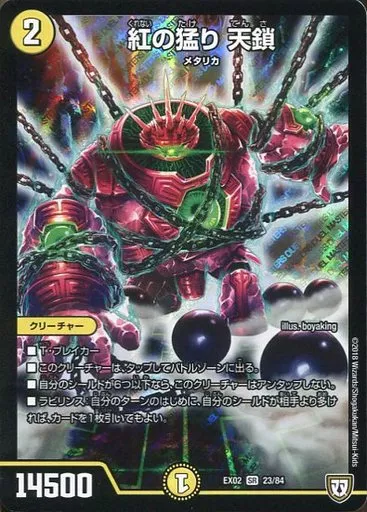 Nombre comercial en japonés: デュエルマスターズ/SR/光/[DMEX-02]デュエマクエスト・パック ~伝説の最強戦略12~ 23/84[SR]:紅の猛り 天鎖