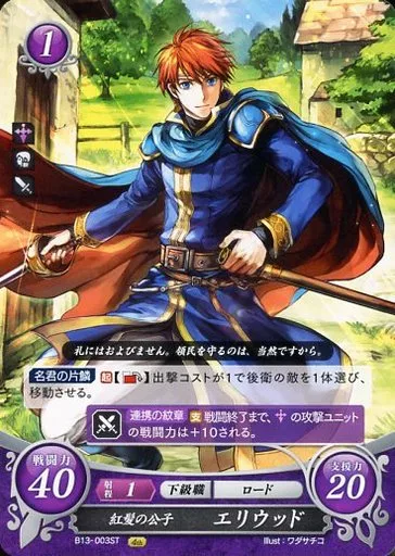Nombre comercial en japonés: TCGファイアーエムブレム0/ST/神器/[S10]スターターデッキ「烈火の剣篇」 B13-003ST[ST]:紅髪の公子 エリウッド