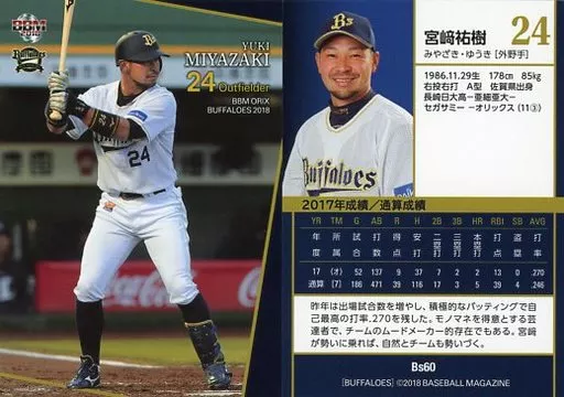 Nombre comercial en japonés: BBM/レギュラーカード/BBM2018 オリックス・バファローズ Bs60[レギュラーカード]:宮﨑祐樹