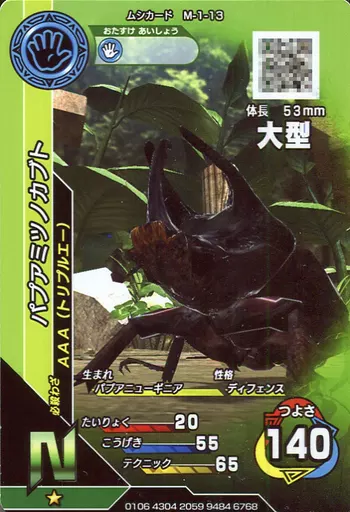 Nombre comercial en japonés: ムシキング/N/ムシカード/2015 ファースト M-1-13[N]:パプアミツノカブト