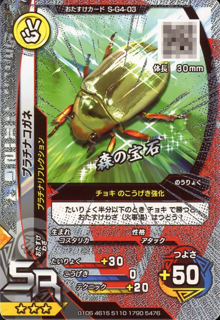 Nombre comercial en japonés: ムシキング/SR/おたすけカード/激闘4弾 S-G4-03[SR]:プラチナコガネ(キラ)