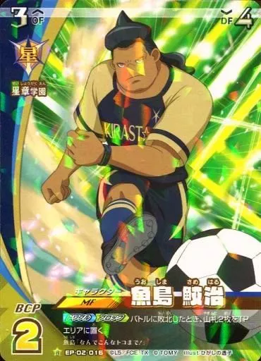 Nombre comercial en japonés: イナズマイレブンTCG/R/キャラクター/星章学園/アレスの天秤編 第2弾 立ちはだかる戦術の皇帝!! EP-02-016[R]:魚島 鮫治