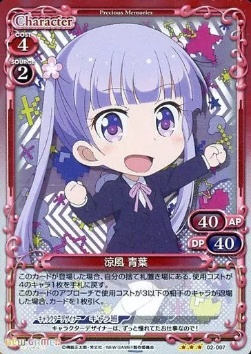 Nombre comercial en japonés: プレシャスメモリーズ/R/キャラクター/赤/NEW GAME!! ブースターパック 02-007[R]:(ホロ)涼風 青葉