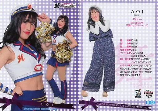 Nombre comercial en japonés: BBM/レギュラーカード/M☆Splash!!/BBM2018 プロ野球チアリーダーカード DANCING HEROINE -舞- 舞43[レギュラーカード]:AOI