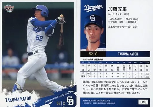 Nombre comercial en japonés: BBM/レギュラーカード/BBM2018 中日ドラゴンズ D40 [レギュラーカード] : 加藤匠馬
