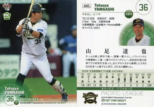 BBM / Regular card / Orix Buffaloes / BBM2018 Baseball Card 2 nd version 441 [tarjeta regular] : Tatsuya 山足