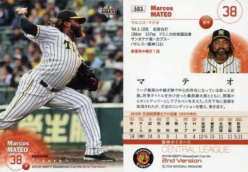 Nombre comercial en japonés: BBM/レギュラーカード/阪神タイガース/BBM2018 ベースボールカード 2ndバージョン 503 [レギュラーカード] : マテオ