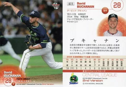 Nombre comercial en japonés: BBM/レギュラーカード/東京ヤクルトスワローズ/BBM2018 ベースボールカード 2ndバージョン 577 [レギュラーカード] : ブキャナン