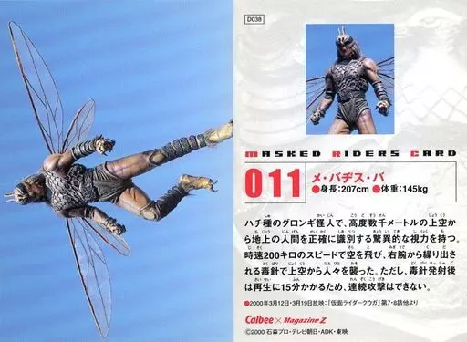 Nombre comercial en japonés: アニメ系トレカ/レギュラーカード/仮面ライダーチップスR 第1記録 011[-]:メ・バヂス・バ