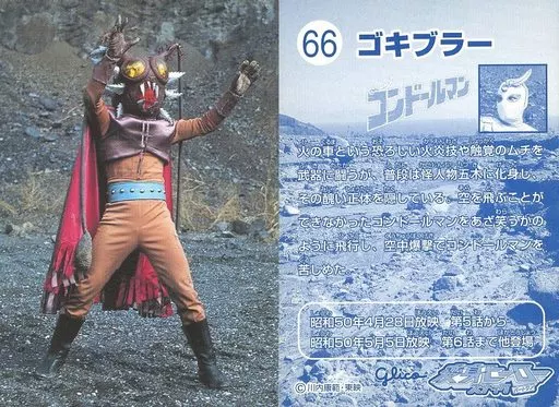 Nombre comercial en japonés: アニメ系トレカ/変身ヒーロースナック パートワン 66:ゴキブラー