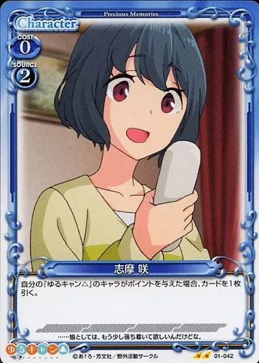 Nombre comercial en japonés: プレシャスメモリーズ/N/キャラクター/青/ゆるキャン△ ブースターパック 01-042[N]:志摩 咲