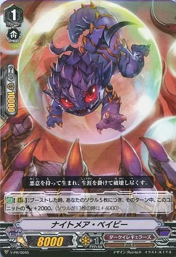Nombre comercial en japonés: ヴァンガード/PR/ノーマルユニット/ダークイレギュラーズ/スペシャルファイトパックvol.2 (2018年10~12月度 ショップ大会参加賞) V-PR/0045[PR]:ナイトメア・ベイビー(RR仕様)