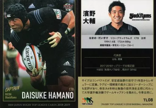 Nombre comercial en japonés: BBM/レギュラーカード/キャプテン/リコーブラックラムズ/BBM2018 ジャパンラグビー トップリーグ2018-2019 TL08 [レギュラーカード] : 濱野大輔