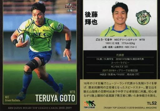 BBM/tarjeta regular / NEC Green Rockets/BBM2018 Japan Rugby Top League 2018-2019 TL52 [tarjeta regular] : Teruya Goto