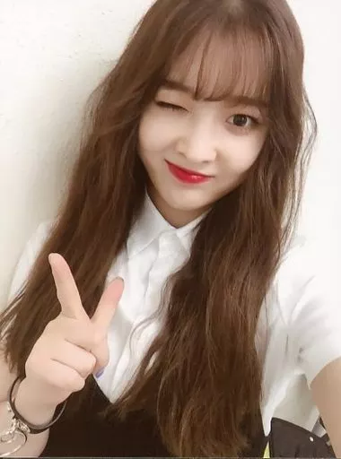 Official photo (mujer) / Idol japonés / DIA DIA / Eun-jin (Eunjin) / Busto arriba / Vestuario blanco. Negro / Dedo pulgar derecho / Cierre del ojo derecho / Cierre de la boca / Fondo blanco / Posta ドサイズ / 3 rd Mini Album "Love Generation" First Inclusion Special Official photo aleatoria