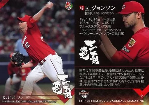 Nombre comercial en japonés: BBM/レギュラーカード/BBM2018 広島東洋カープ セ・リーグ優勝記念カードセット 三連覇 12 [レギュラーカード] : K.ジョンソン