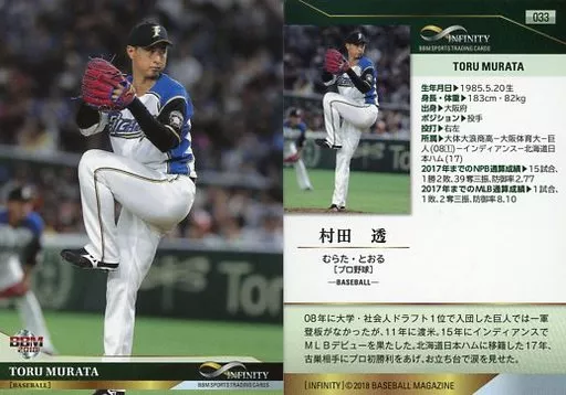 BBM / tarjeta regular / béisbol profesional / BBM2018 Infinity 033 [tarjeta regular] : Tōru Murata