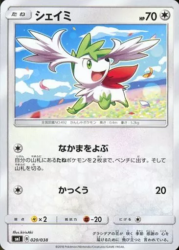 Nombre comercial en japonés: ポケモンカードゲーム/草/サン&ムーン スターターセット 炎のブースターGX/水のシャワーズGX/雷のサンダースGX 020/038:シェイミ