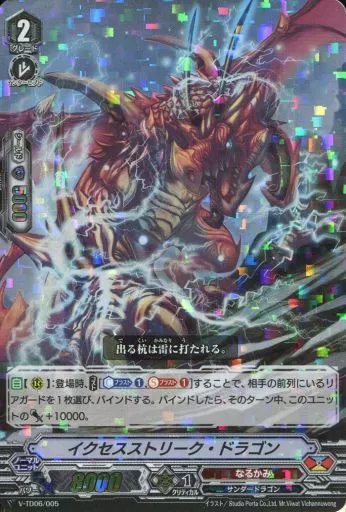 Nombre comercial en japonés: ヴァンガード/ノーマルユニット/なるかみ/トライアルデッキ 石田ナオキ [VG-V-TD06] V-TD06/005[-]:イクセスストリーク・ドラゴン(RRR仕様)