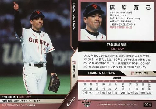 BBM / Regular Card / Record Hall of Fame / Yomiuri Giants / BBM2018 FUSION 024 [tarjeta regular] : Hiromi Makihara
