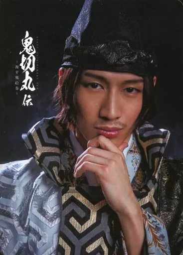 Tarjeta de colección (hombre) / tarjeta comercial en el escenario "Onikiri 丸伝 ~ Genpei Oni Emaki ~ Replay" Kikukawa Haru (Taira no Munemori) / Bust-up, vestuario azul claro, negro, mandíbula izquierda, fondo negro / escenario "Onikiri 丸伝 ~ Genpei Oni Emaki ~ Replay" Tarjeta comercial