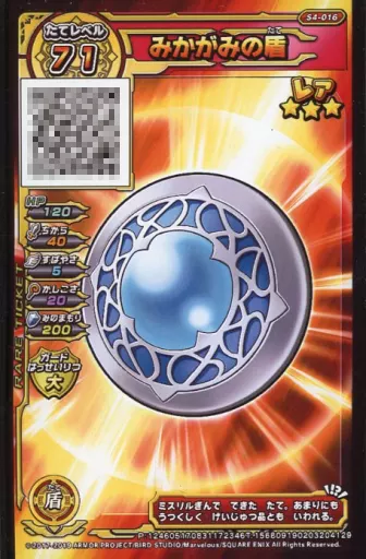 Nombre comercial en japonés: ドラゴンクエストモンスターバトルスキャナー/レア/S/そうびチケット/戦え!ドラゴンクエスト スキャンバトラーズ超4弾 S4-016[レア]:みかがみの盾